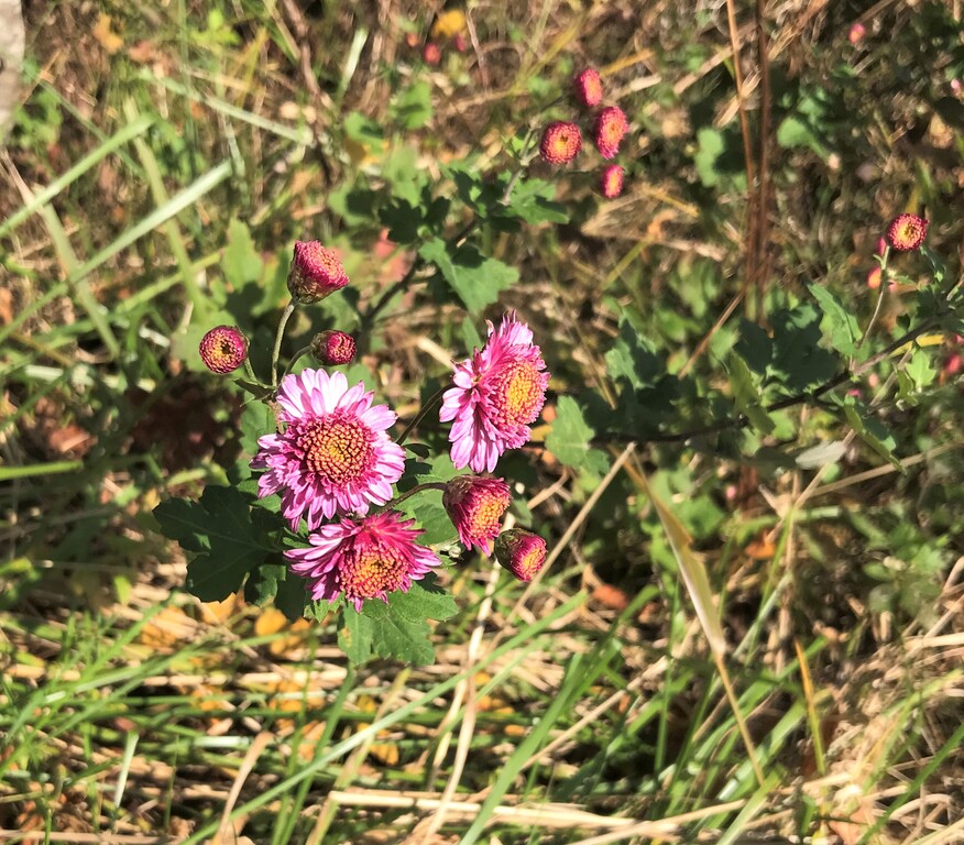 きつねくぼから自宅へ戻る途中、道路沿いにピンクの花が咲いている木を見つけました。