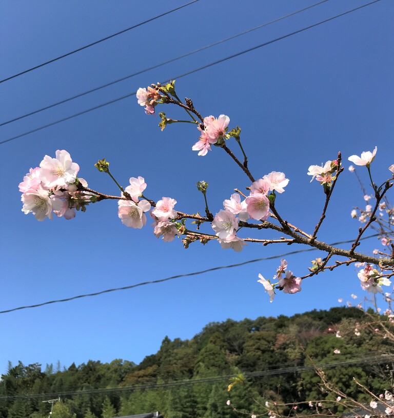 自宅に到着してから色々調べてみましたが、桜は10月とか11月から咲き始める種類もあるし、1月頃から咲き始めるものもあるとのこと。この桜はどうやら「冬桜」という品種らしいです。