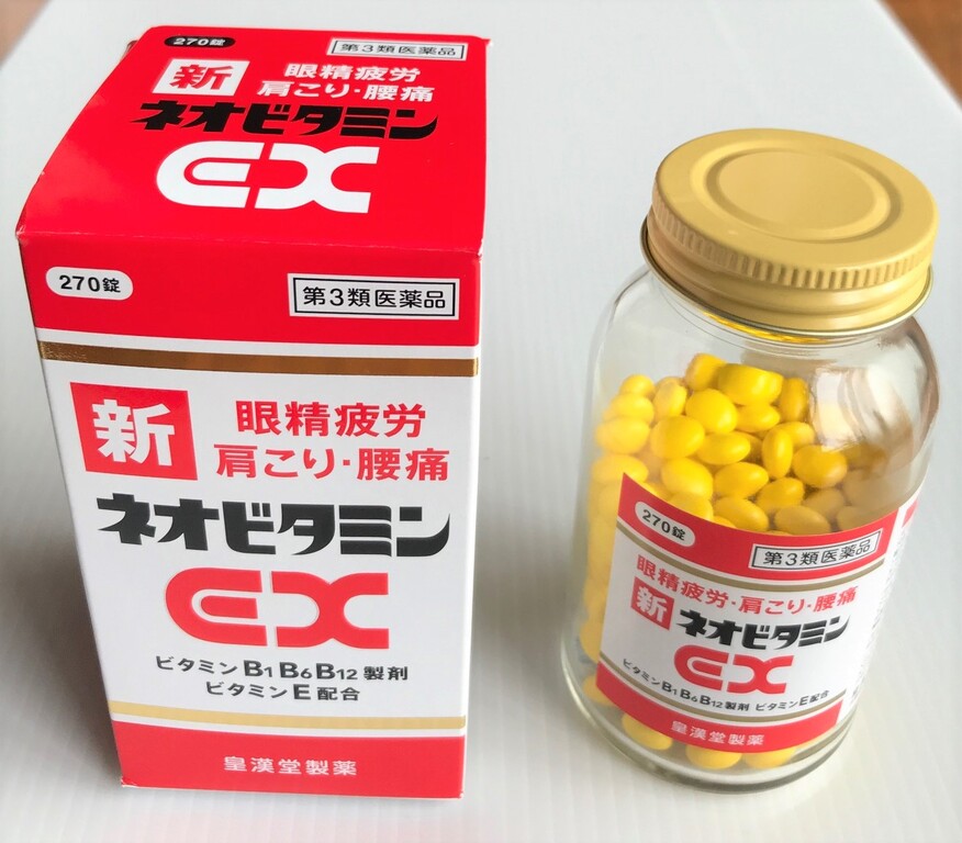 ありました、ありました。皇漢堂製薬株式会社で販売している「新ネオビタミンEX」がそれ。成分はアリナミンEXプラス、リョー●ン●V錠とまるっきり同じ。Amazonでのお値段は、約3か月分の270錠入でなんと2,035円!! イェーイ!! これぞジェネリック価格!! しかもプライム会員で送料無料。即注文。翌日到着。そして服用を始めてみましたというお話でした(笑) おしまい・・・。