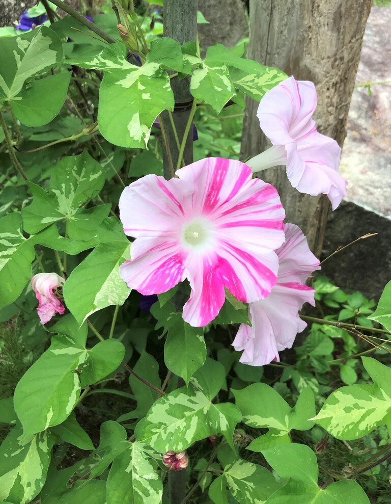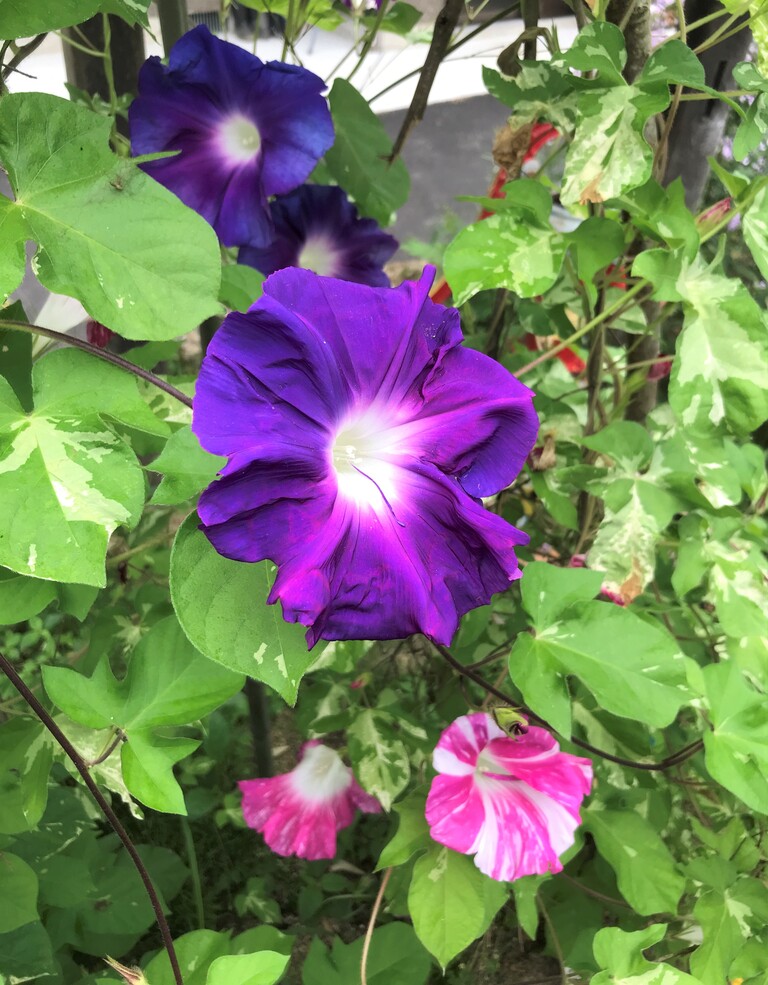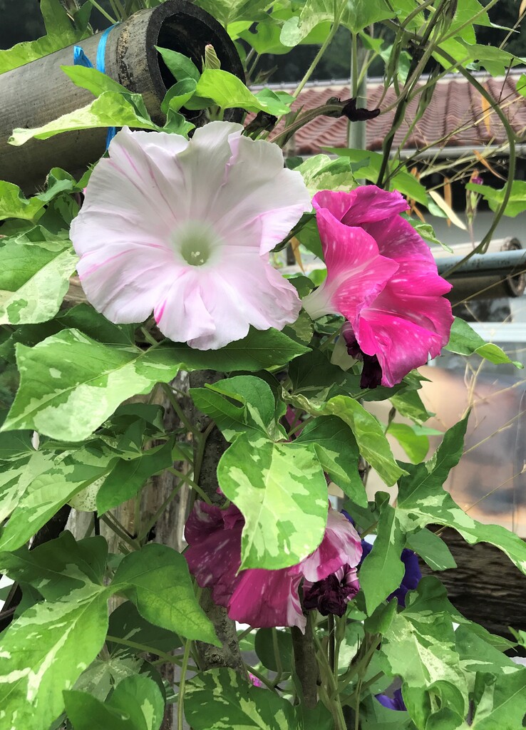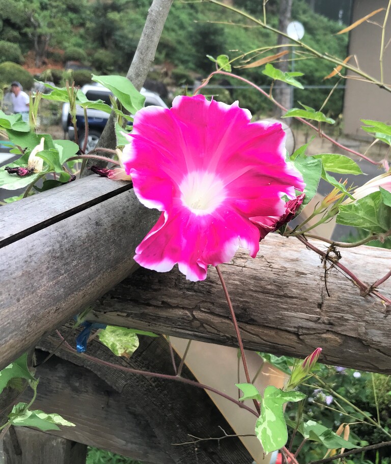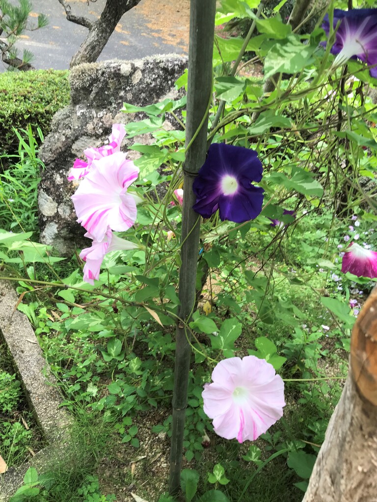 私の背の高さよりもずっと大きく弦を張らせ、毎朝綺麗な花を咲かせます。