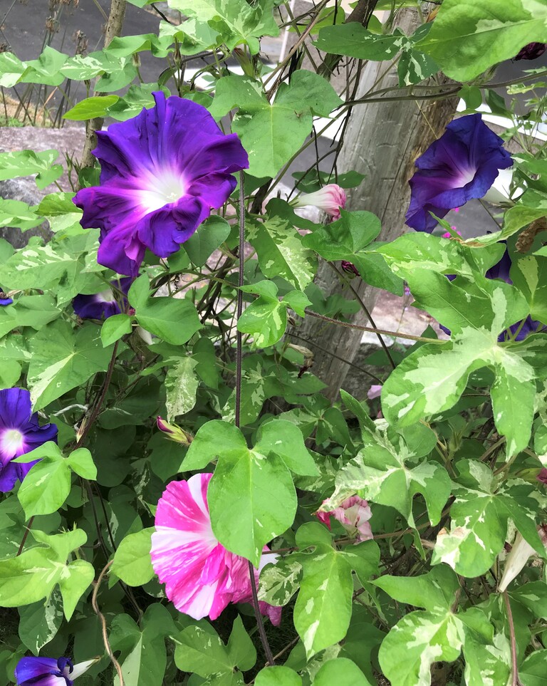 専業主夫の朝の仕事(食事、掃除、洗濯)が一段落するのがAM10:00頃なのですが、その頃には既に朝顔はしぼんでしまい、「あっ失敗した。今日も撮れなかった。」となっていたのですが、本日は濃い霧の曇天。家事を終了しても綺麗な花を咲かせていました。