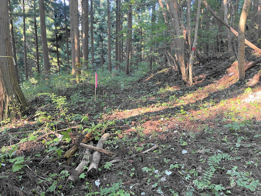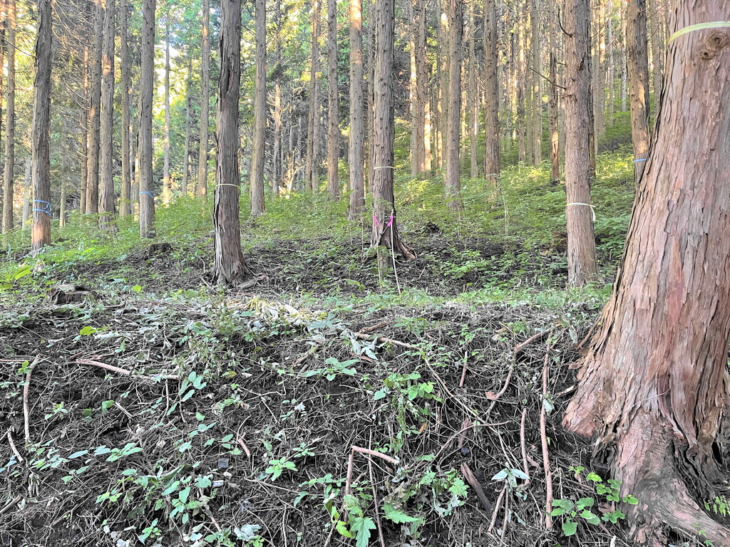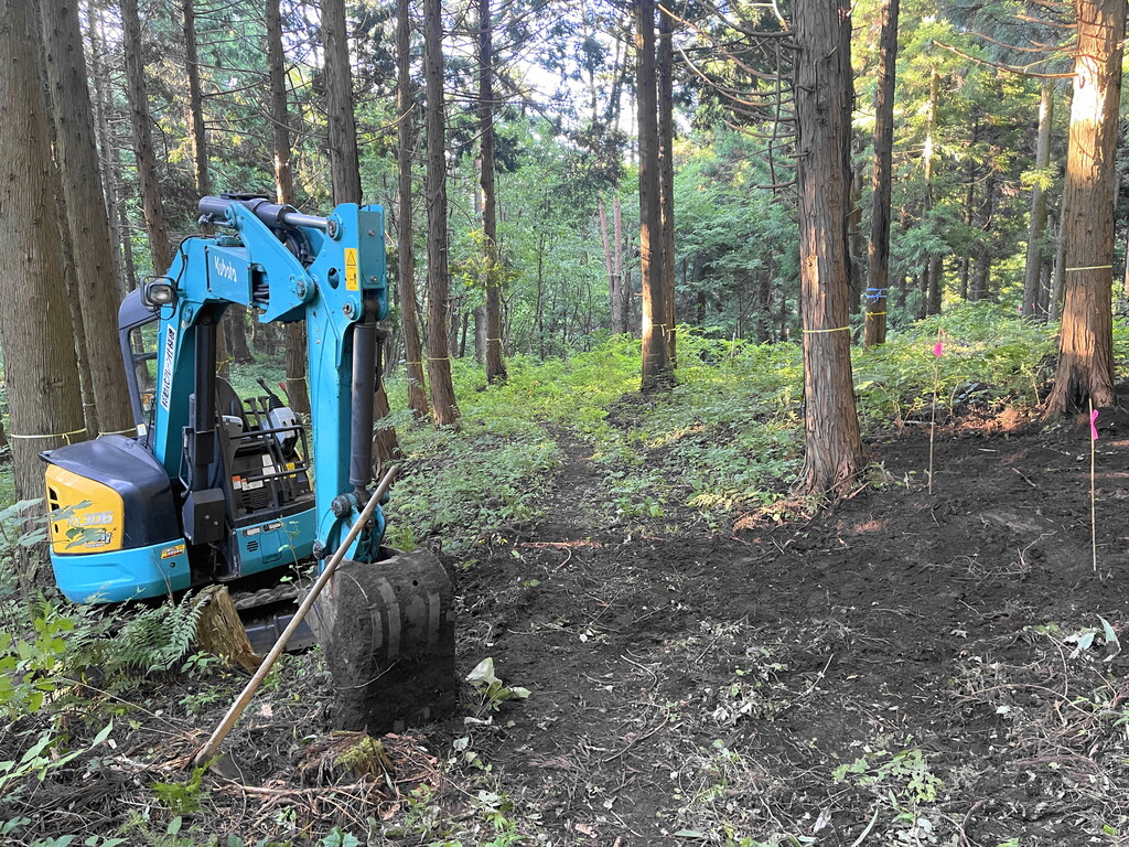 基地を作りたいという場所は、スーパー爺ちゃんが昔杉の木を植林していたところ。故にかなりの数の杉の大木を伐採するようになってしまうのですが、10tトラックが入れるような道路も整備してくれるということだったので、快く協力することにした次第。