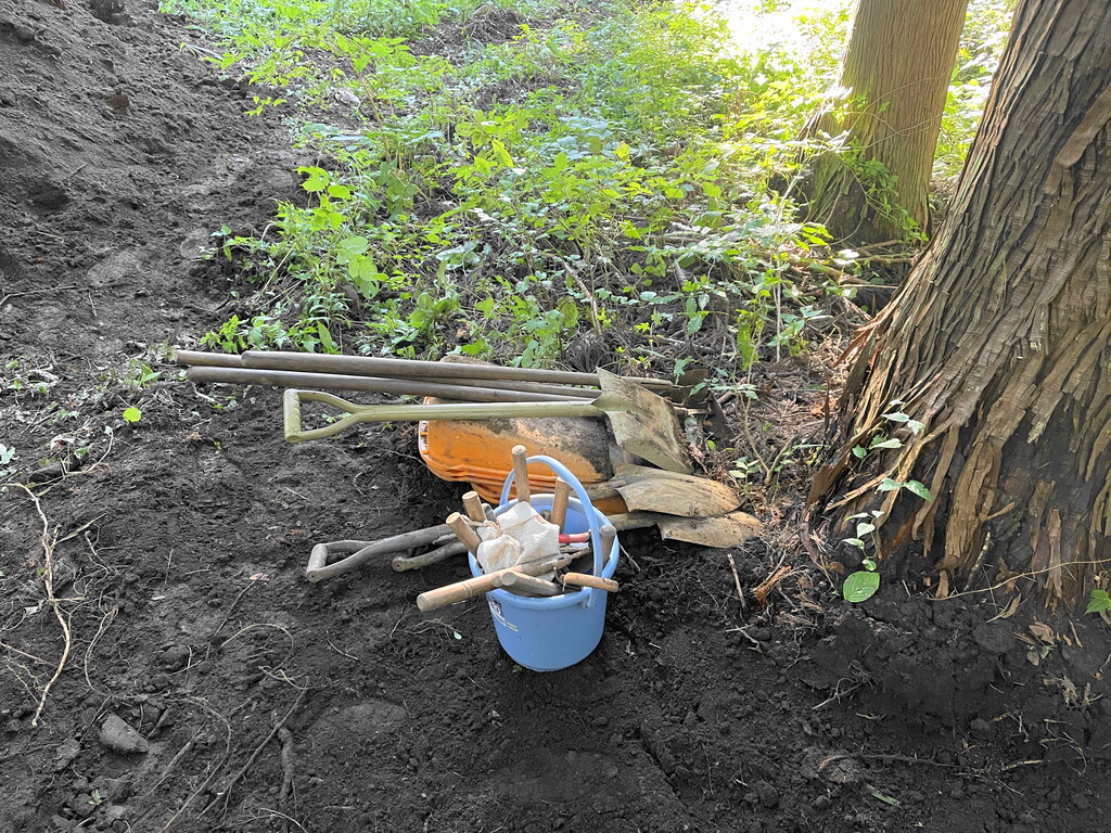 そして、こちらはスーパー爺ちゃんが「行者ニンニク」を植えていた場所。一旦掘って既に埋め戻しされてました。