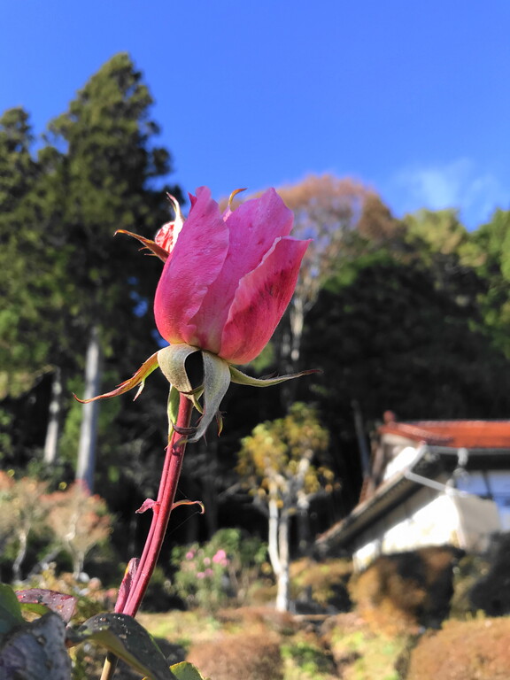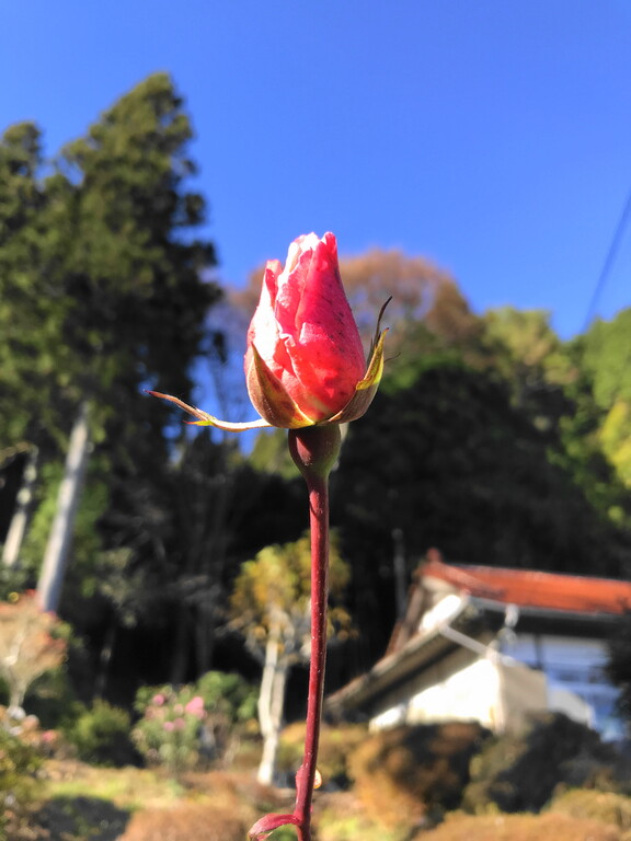 おっと、こちらでは寒さの中、別の新しい薔薇が開花しました。