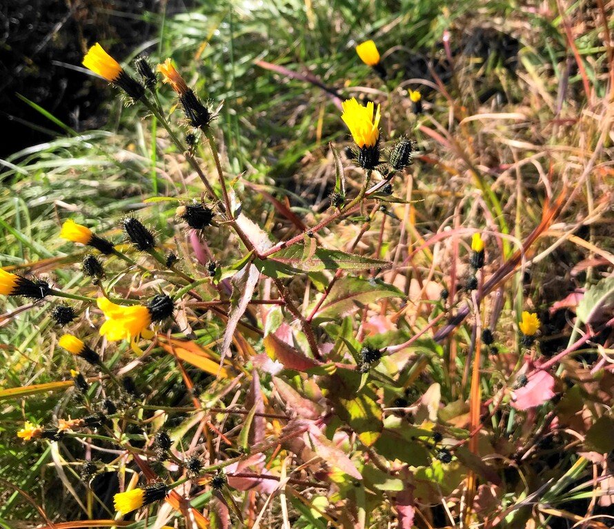 寒いからなのか花が閉じています。いろいろ調べてみましたが、どうやらキク科の「コウゾリナ(剃刀菜・顔剃菜)」と思われます。