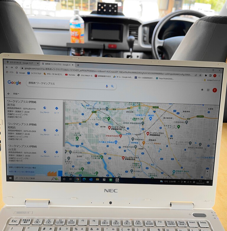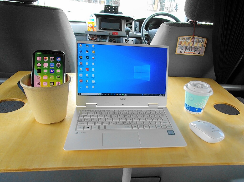 「カフェきつねくぼ」さんの駐車場で、しばしこれからどうするかの1人作戦会議を決行。