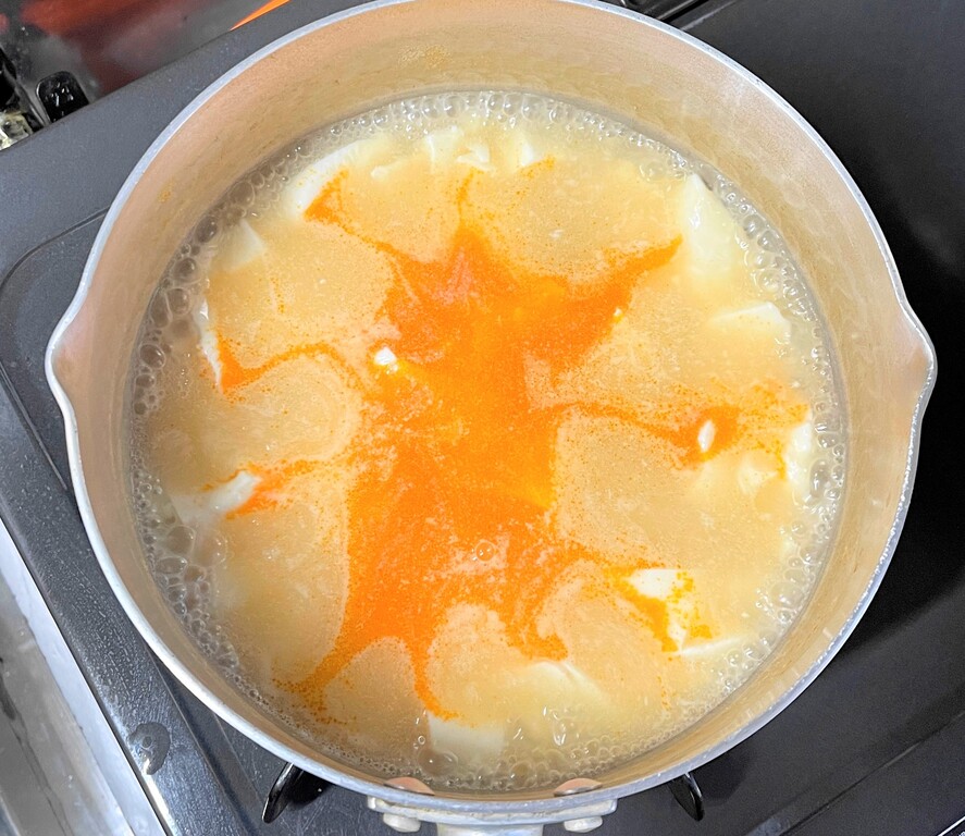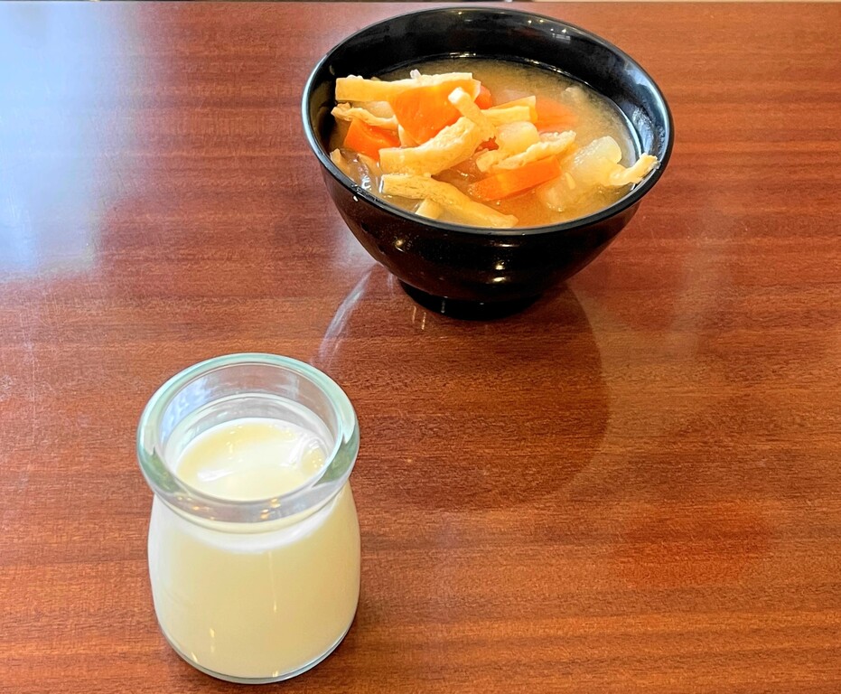 おっと、ひろちゃんは具沢山にした味噌汁と牛乳を運んできました。