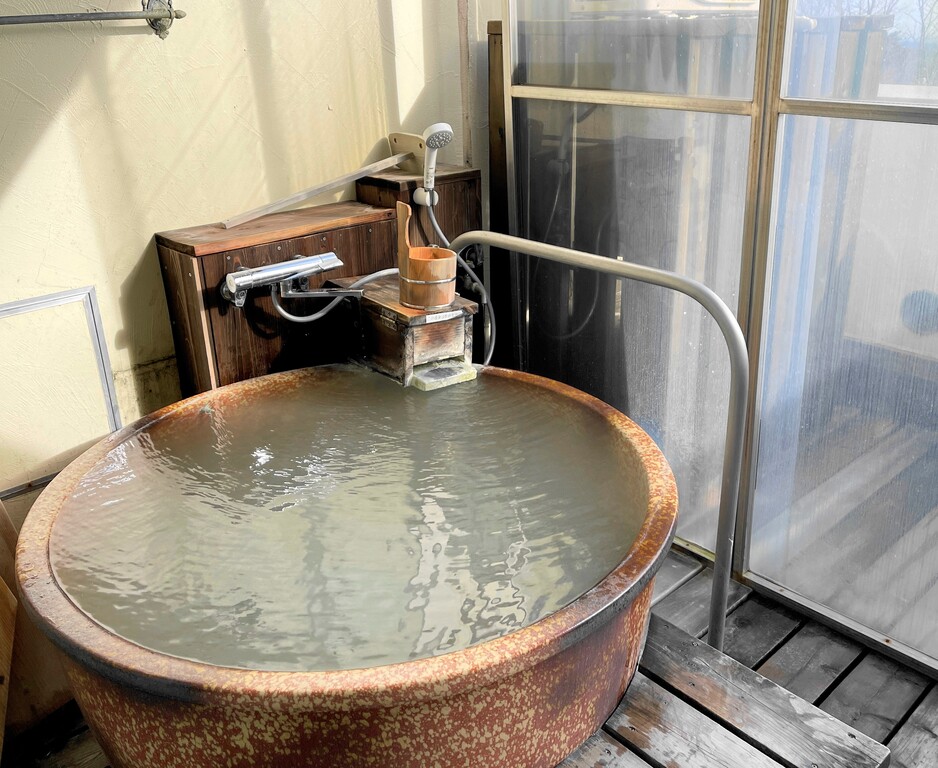 露天風呂のあるベランダには薄っすらと雪が🥶