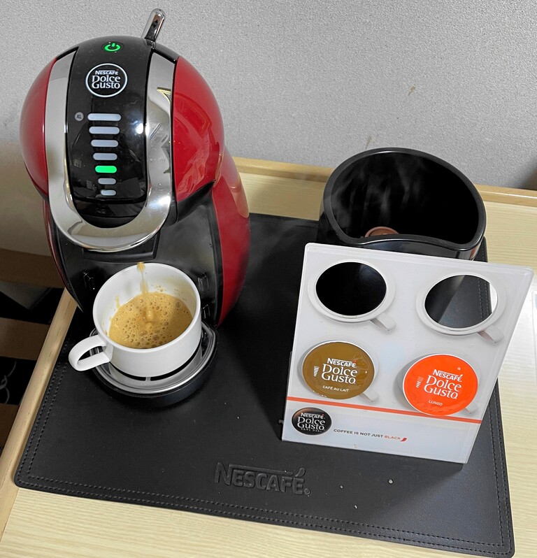 この部屋にはカプセル式コーヒーメーカーが置いてあったので、風呂上りにいただきました。