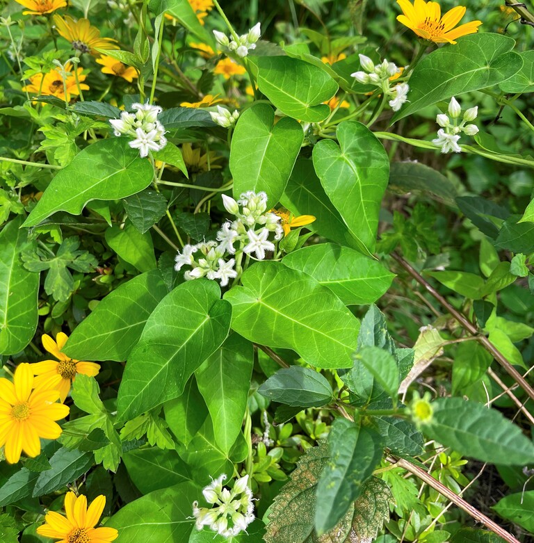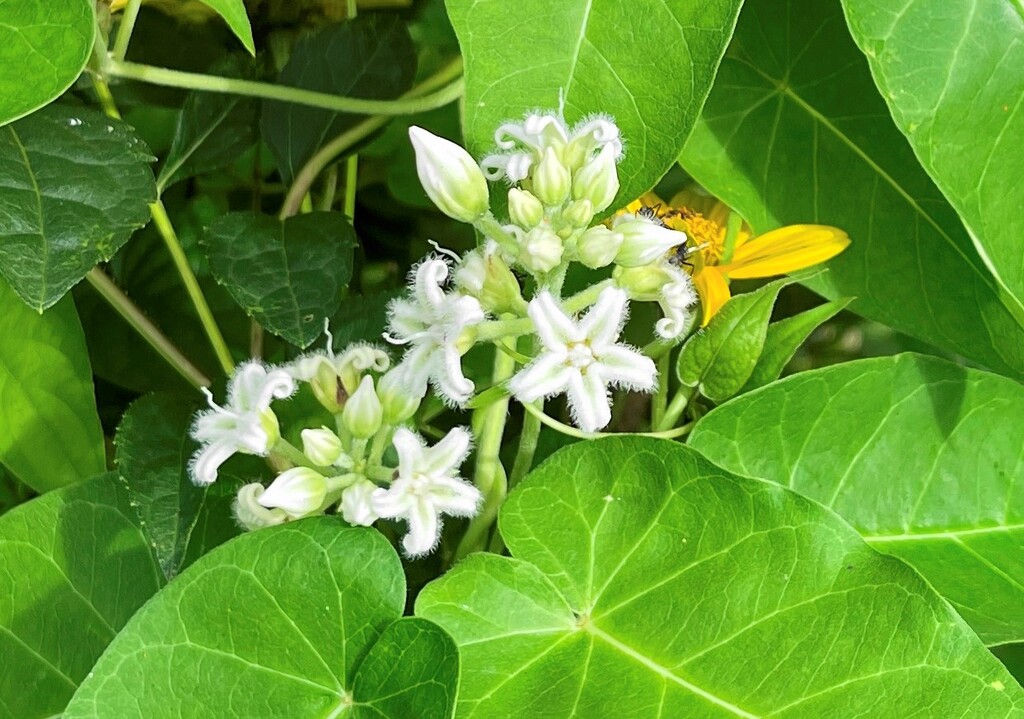 どうやら「ガガイモ(蘿藦)」という植物のようです。このブログの過去記事を調べてみましたが初登場の花となっておりました。丸4年以上暮らしていても新発見があるのが「きつねくぼ」です(笑)