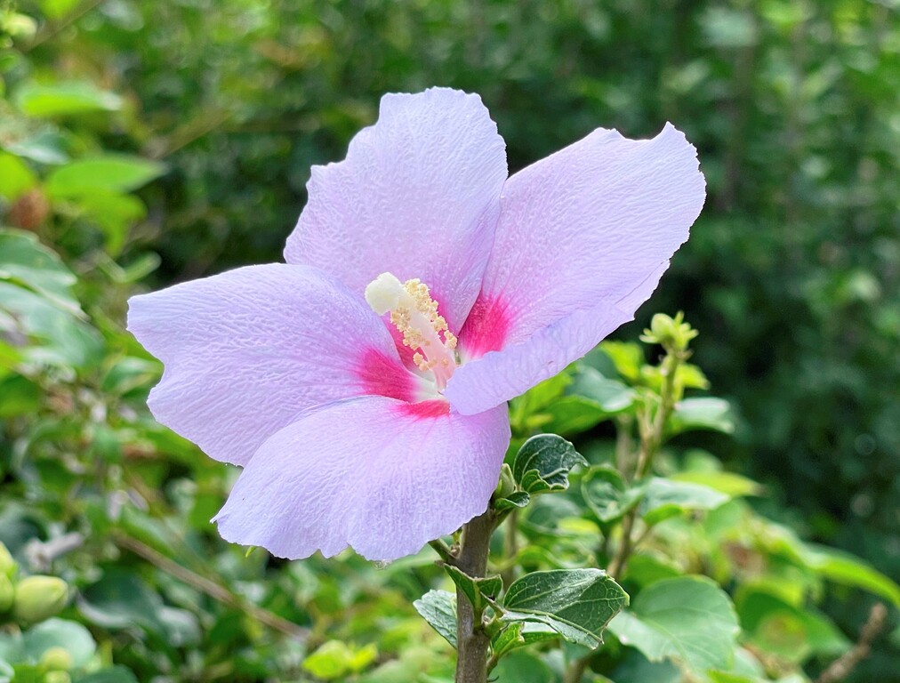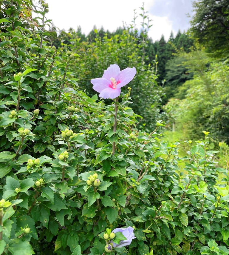 こちらはやっと咲き始めたピンク色の「ムクゲ(木槿)」です。