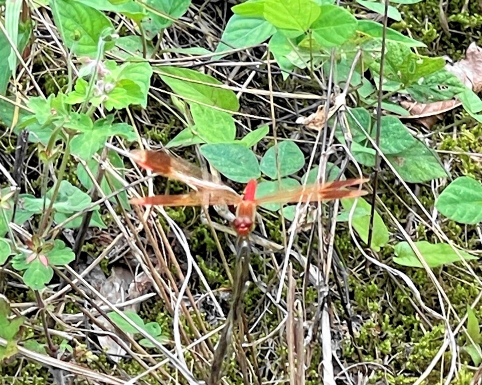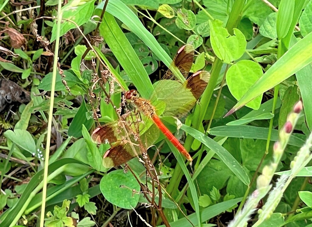 ちょっと写真がボケてしまいましたが、このトンボは「日本で最も美しい赤トンボ」とも言われていますね。私が子供の頃は「クルマトンボ」と呼んでいました。