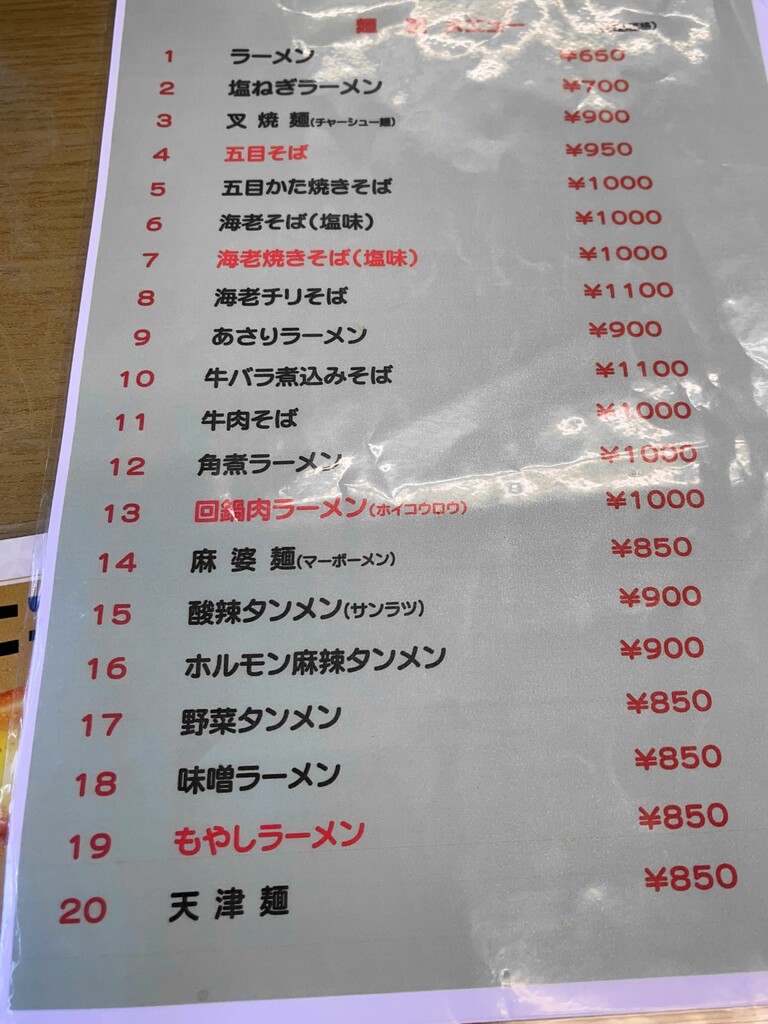 ひろちゃんはもちろん「五目やきそば(950円)」をオーダーしました。私は大人気という「台湾ラーメン(850円)」と「餃子3個(400円)」をお願いしました。
