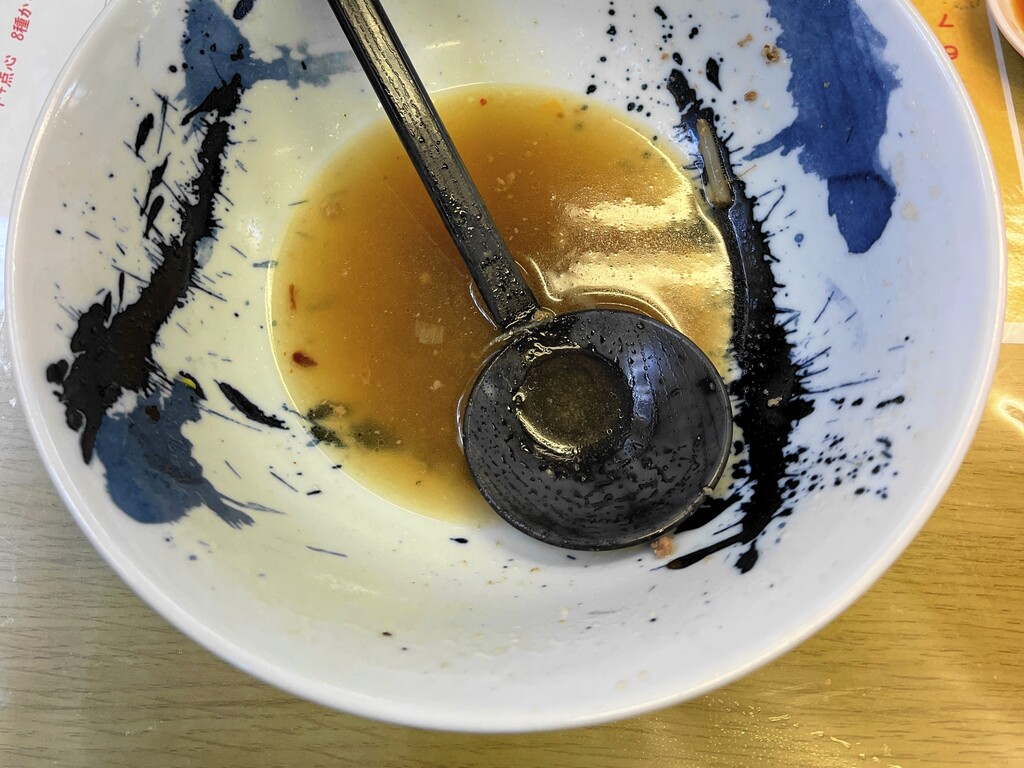 あっ! 旨っ!! 少し山椒が効いている感じがします。独特の美味しさがありますね。私好きですこのスープ。