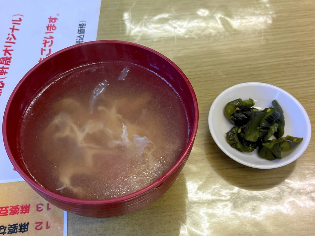やきそばについているスープと漬物。