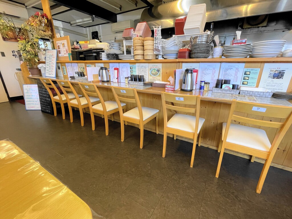 店内はカウンター席とテーブル席で結構な人数が入れそうな広さでした。明るくて清潔感もバッチリ。