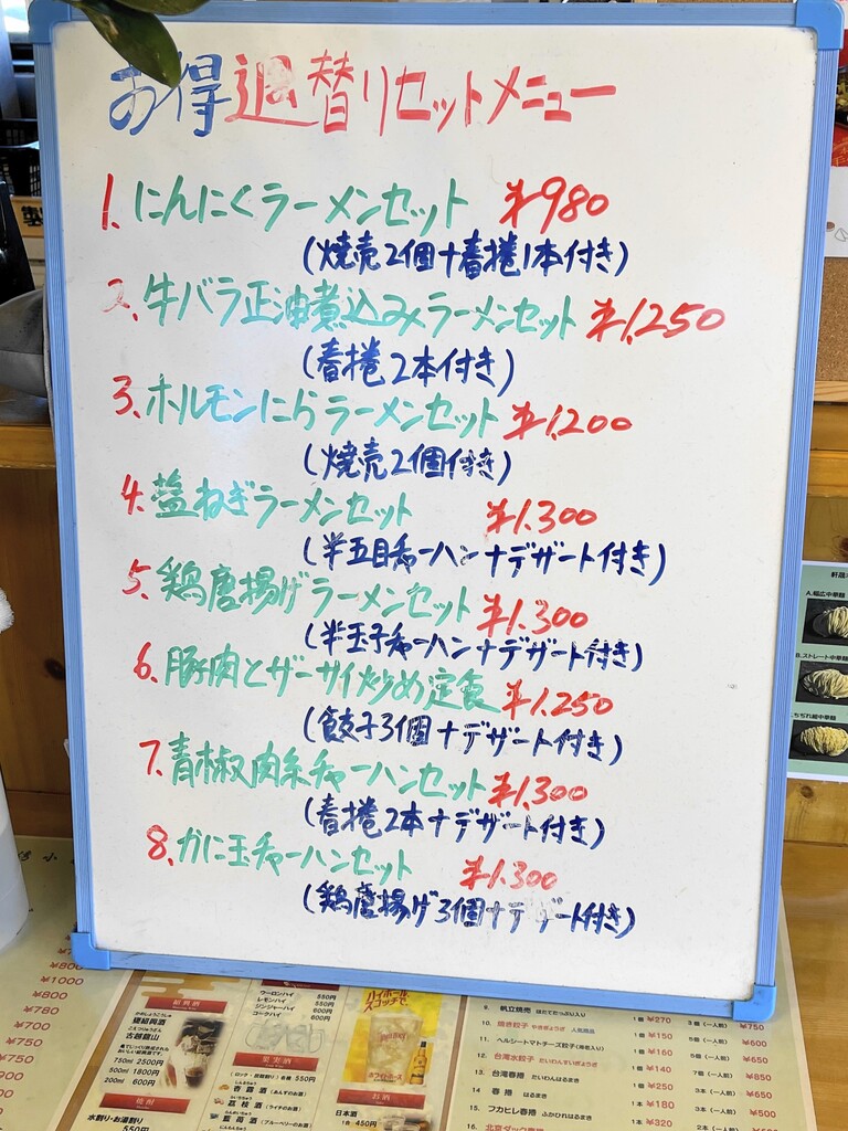 入口を入るとお得なセットメニューの案内が・・・