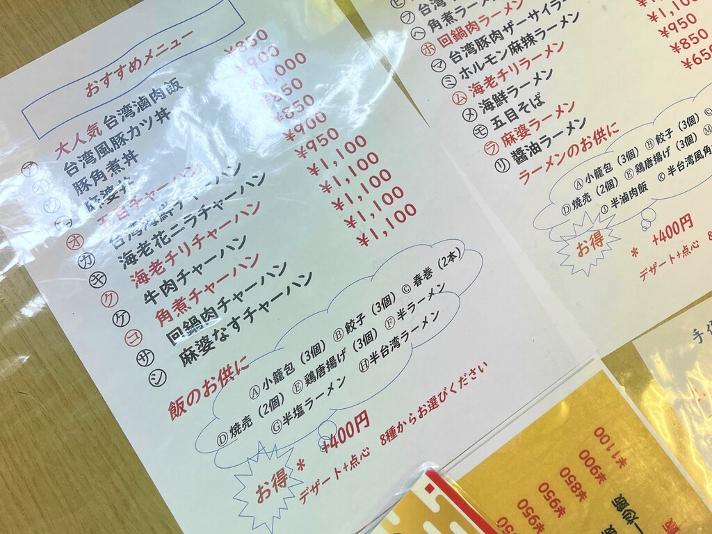こちらが正式なメニューなのかな・・・