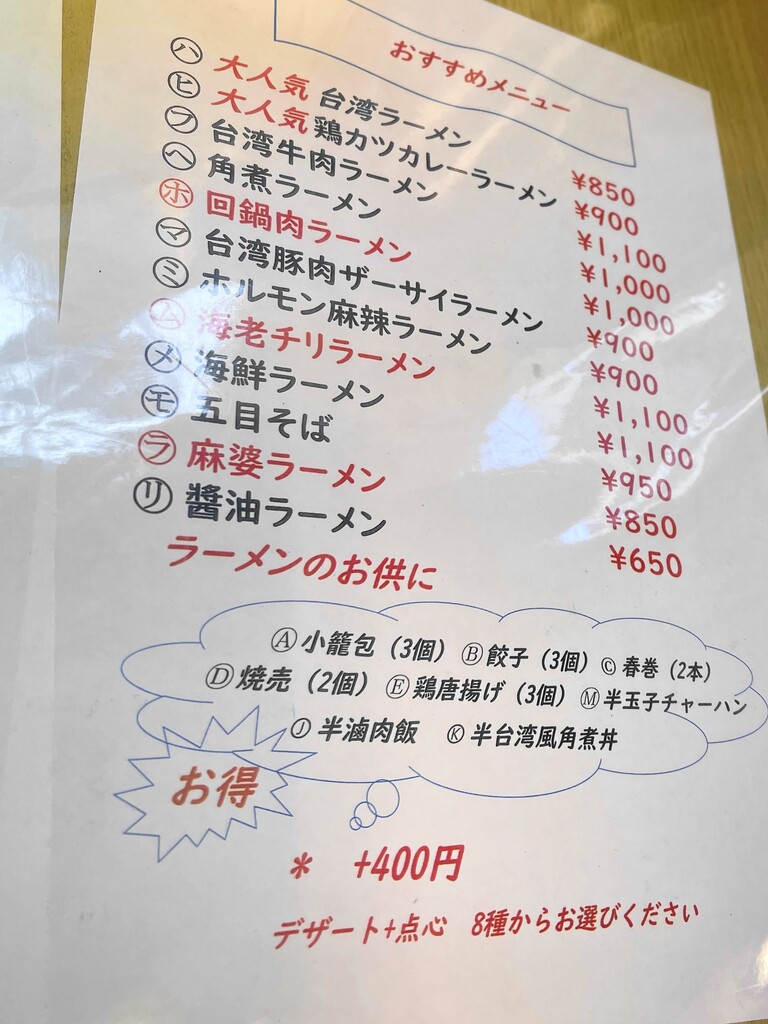 あれっ!? 台湾ラーメンというからには、赤い唐辛子がたくさん入っているヤツをイメージしていたのですが、なんか普通のラーメンのようにしか見えません。後で調べてみたのですが、私が知っている「台湾ラーメン」は、名古屋などが有名なのですが、日本発祥の麺料理なんだそうです。このお店の「台湾ラーメン」は本当の台湾で食べられているラーメンなのかな?