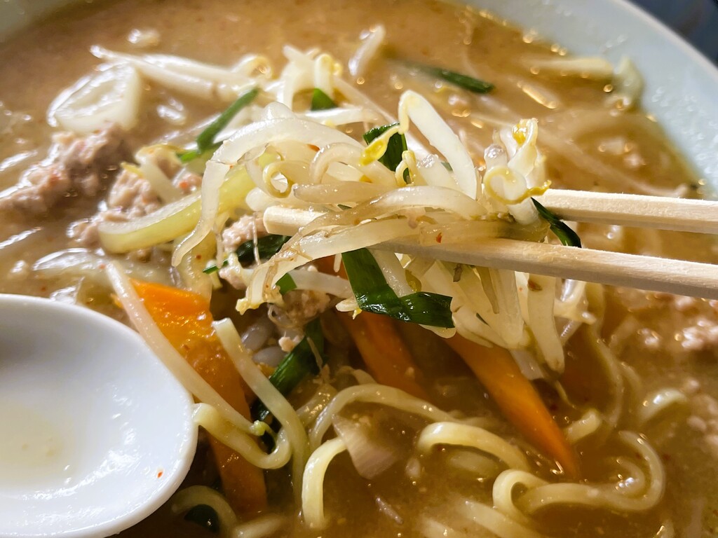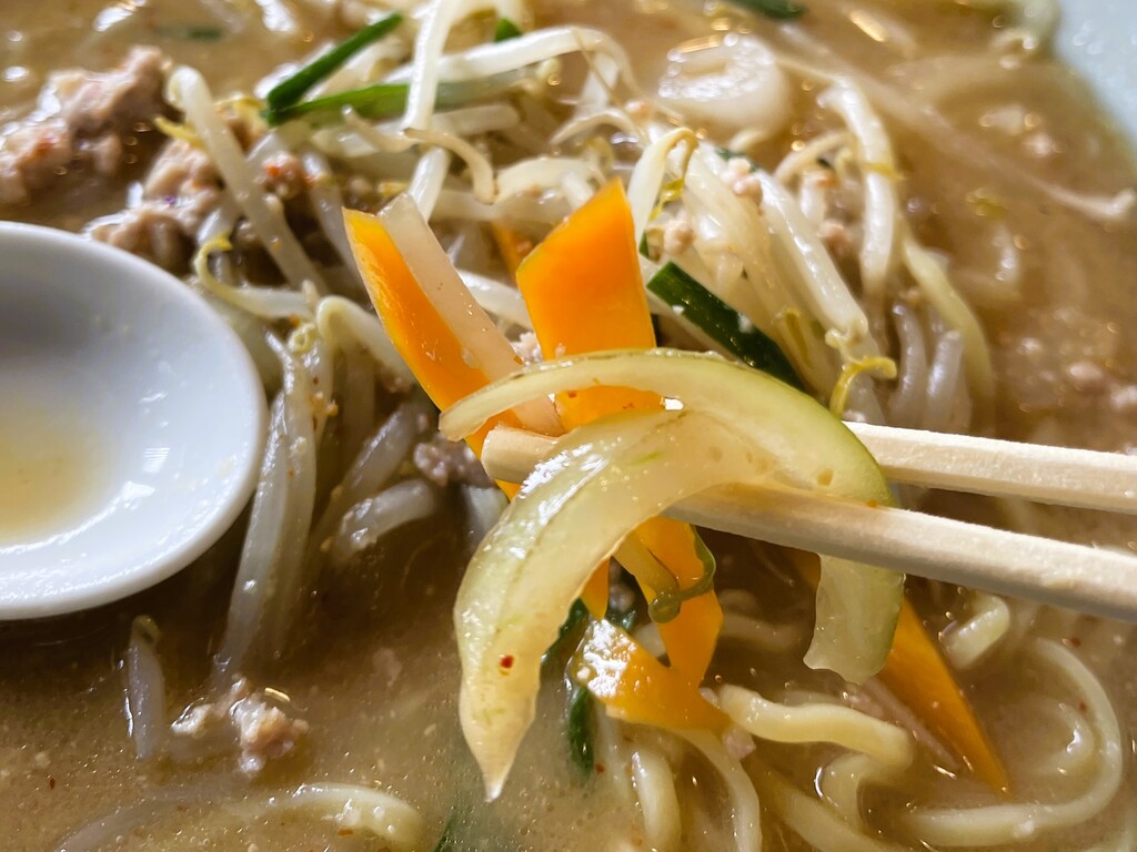 モヤシはもちろん、ニンジン、タマネギなどもシャッキシャキ。心地よい食感です。