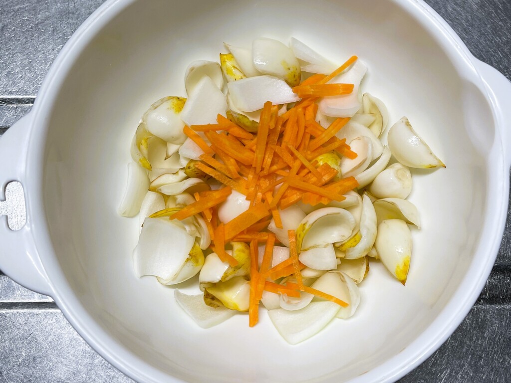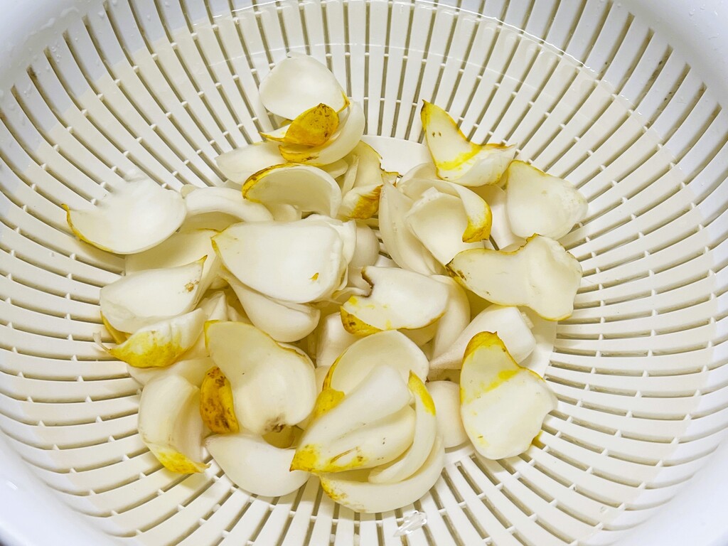 まず「鱗片」を1枚ずつ剥がして、丁寧に水洗いします。