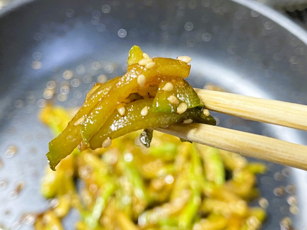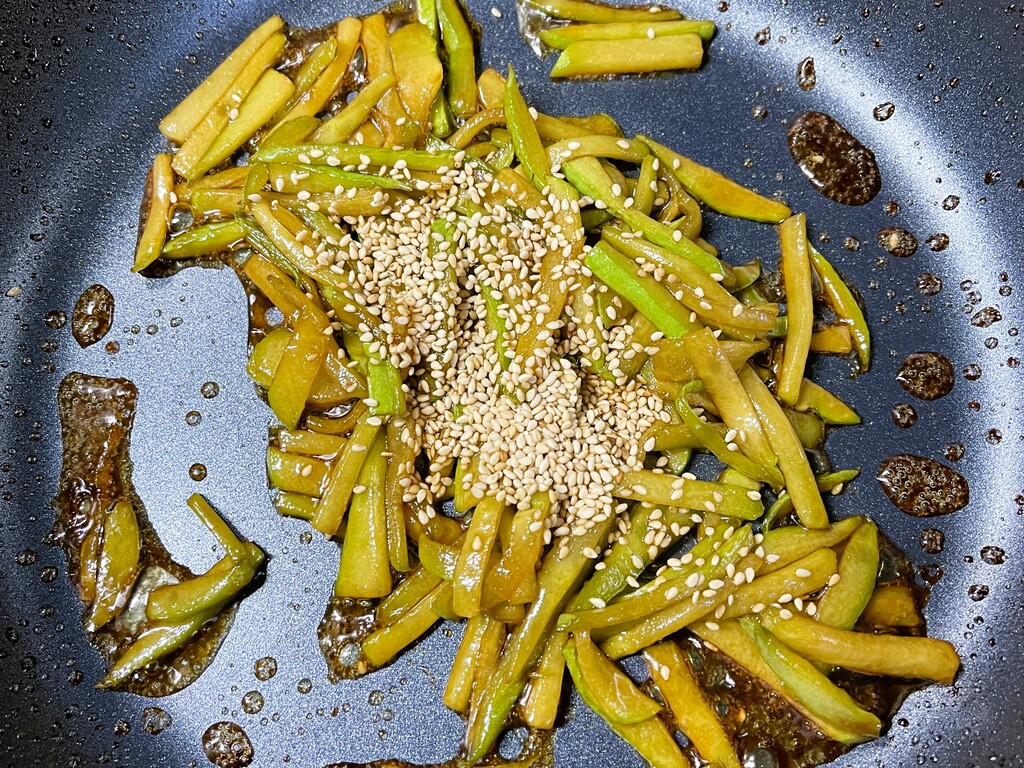 良い感じになったら白ゴマを和えて完成で~す。