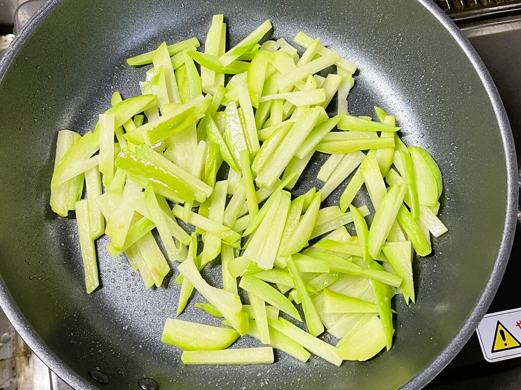 皮は付いたままで細切りにします。