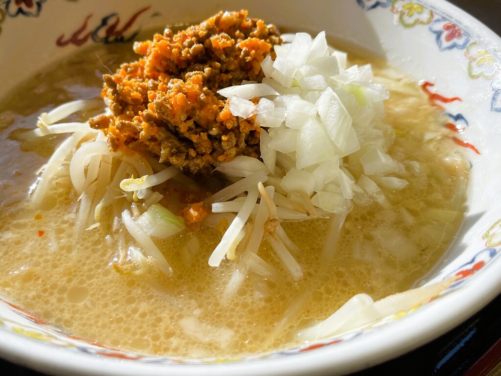 そこへ湯切りした麺を投入し、トッピングをしたら完成です。