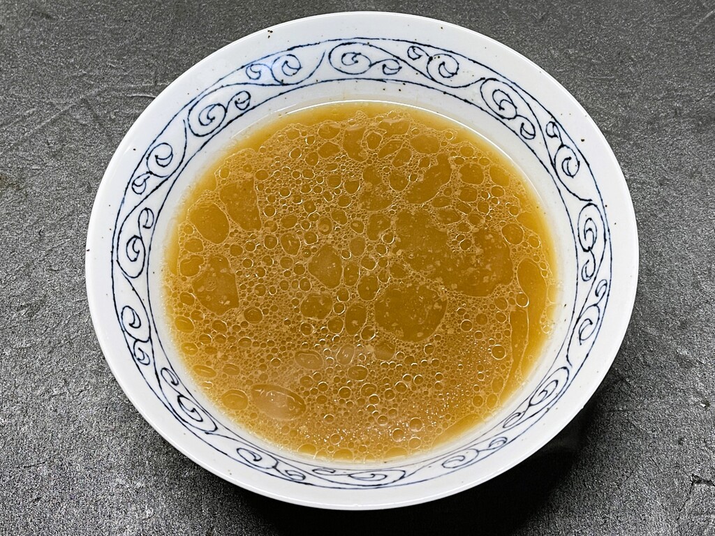 予めトッピングの具材を準備してから、麺を茹で始めます。麺を茹でている間に。器に熱湯を注ぎ、スープを袋ごと投入、器とスープを温めます。その後、温まった器にスープを入れて、再度熱湯を注ぎました。