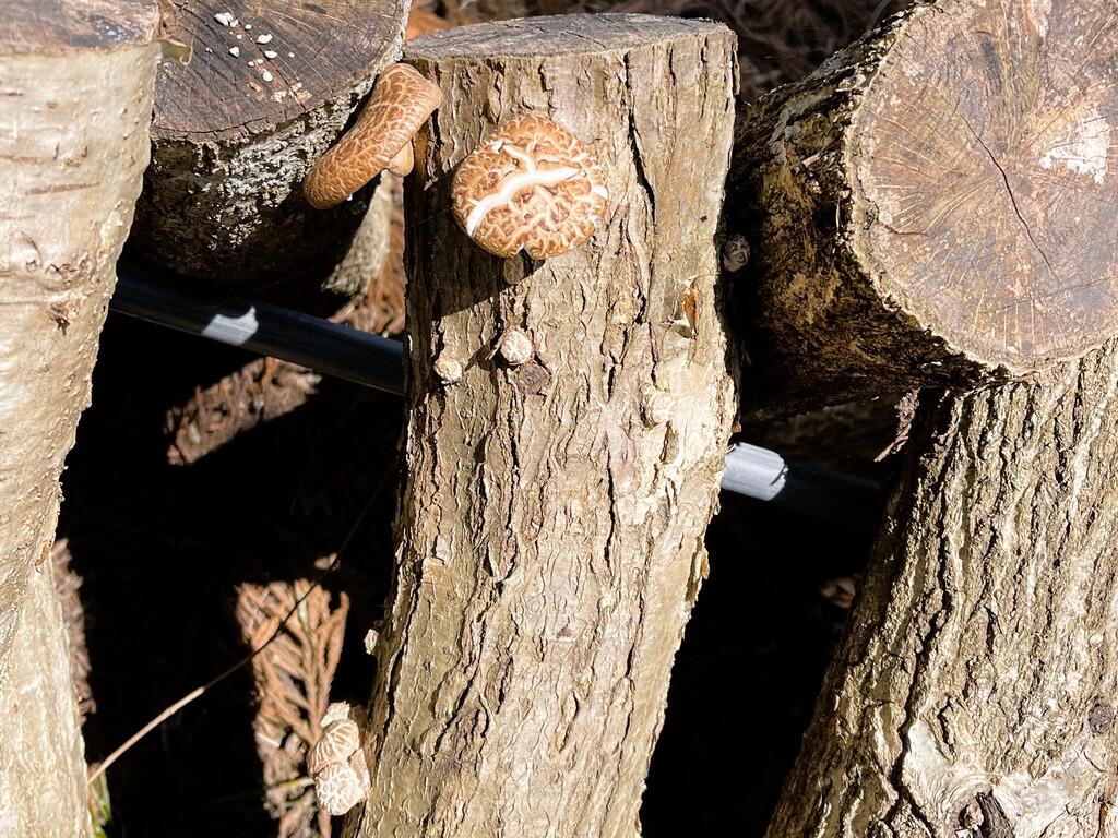 ということで、シイタケの原木が置いてある場所へ行ってみると・・・