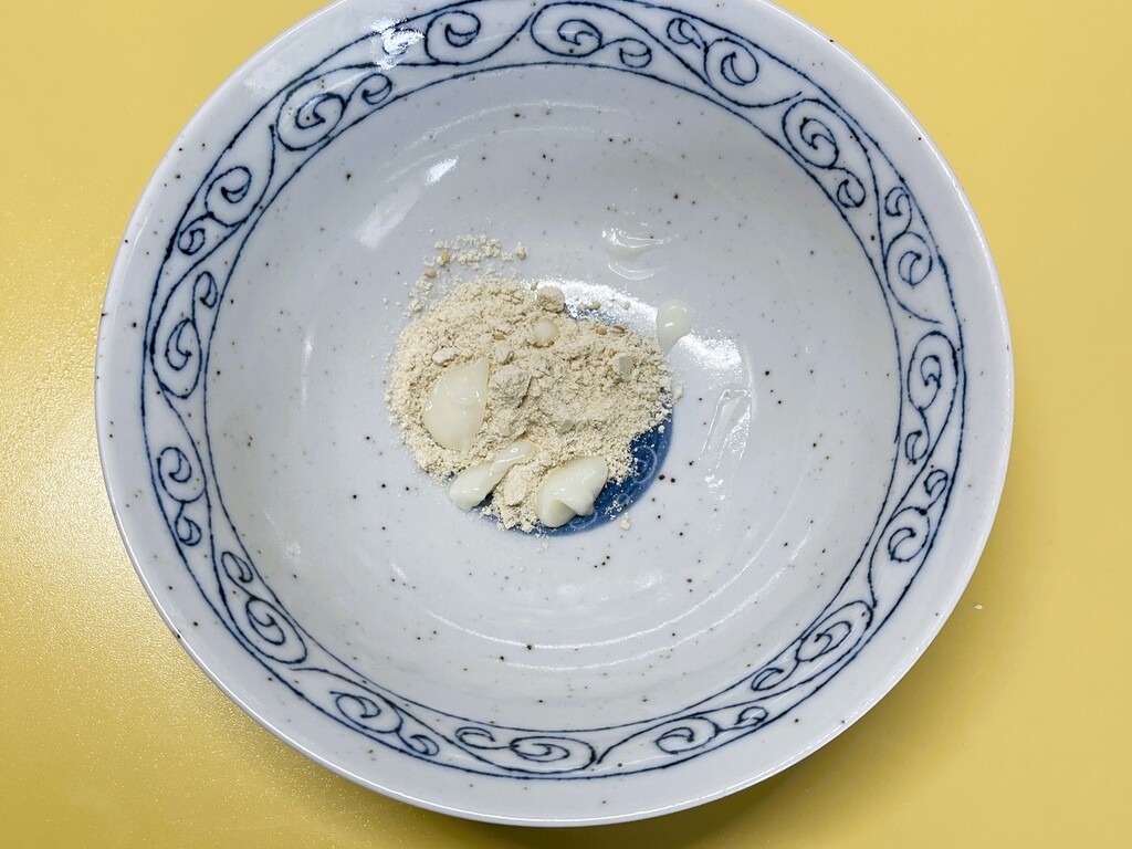 詰めた「たね」が剥がれないように、シイタケの傘の部分には小麦粉をしっかりと振りました。