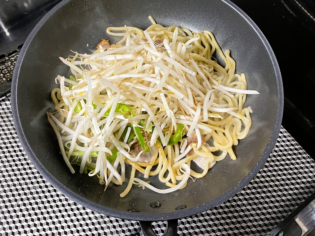 野菜はモヤシとピーマンのみを入れてみました。