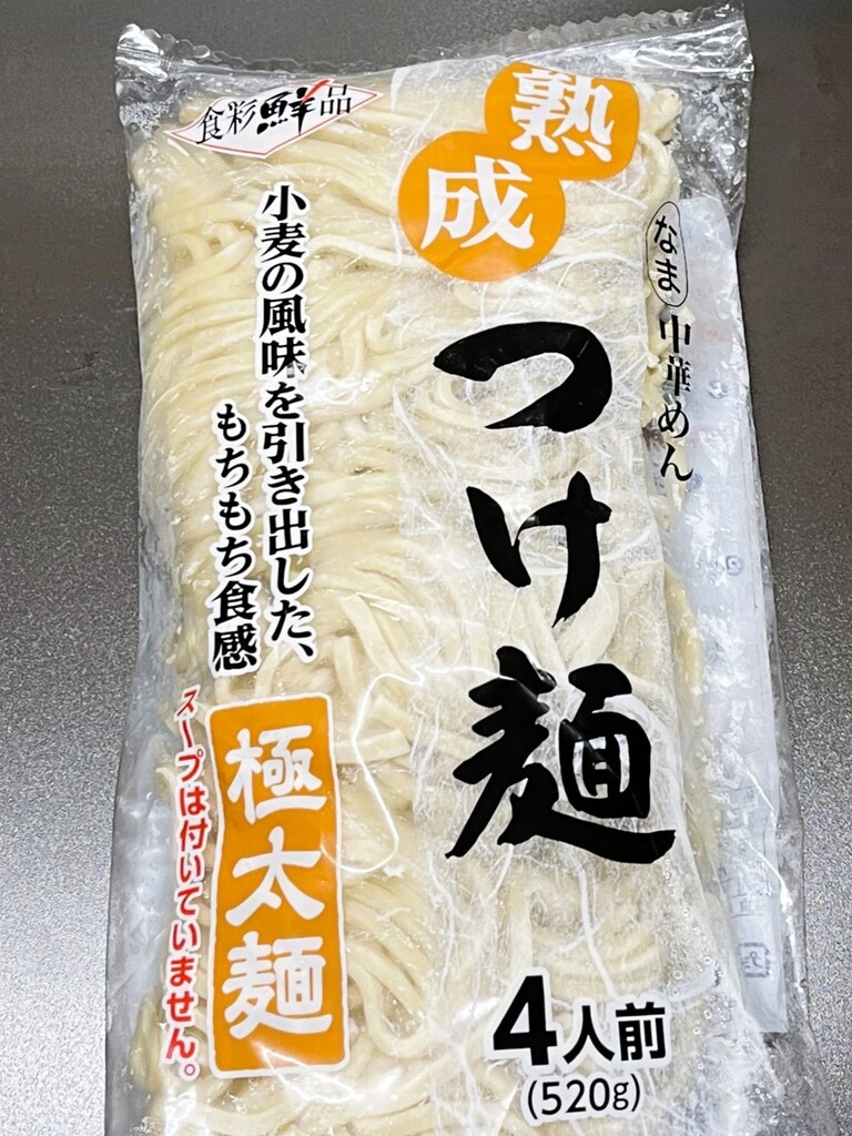 麺は、以前「ラーメン狐郎」で使用した「つけ麺用の極太麺」が残っていたのでそれを使います。