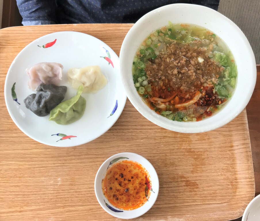 そしてひろちゃんが注文したのが、食べログの口コミに「スープが美味しくて最後まで飲み干しました」との投稿があった「台湾ニンニク湯麵(たんめん)」をセットメニューで。水餃子が4個ついて1,000円(税込)