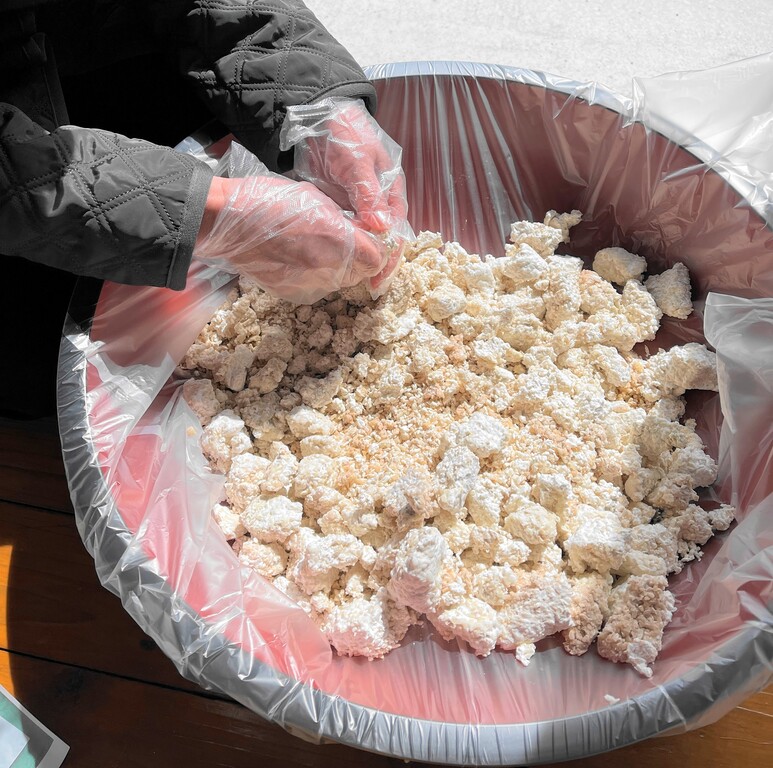 それをビニール袋に入れて、熱いうちに潰していきます。