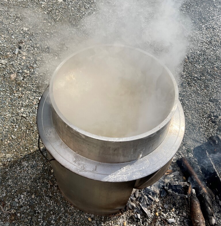 翌朝、一晩水に浸けて置いた大豆を茹でる作業に入ります。