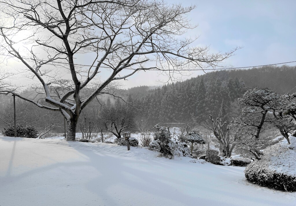 いつもはスーパー爺ちゃんが、車できつねくぼから約5kmの場所にある新聞ポストへ朝刊を取りにいくのですが、雪道が心配なので私が行ってくることにしました。