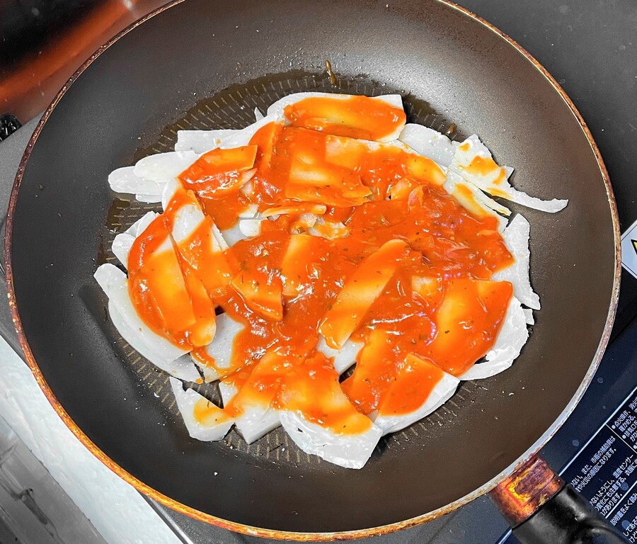 その上にピザソースを塗り塗り。