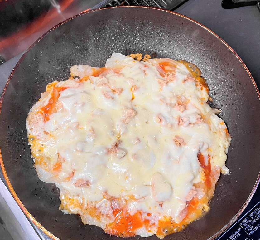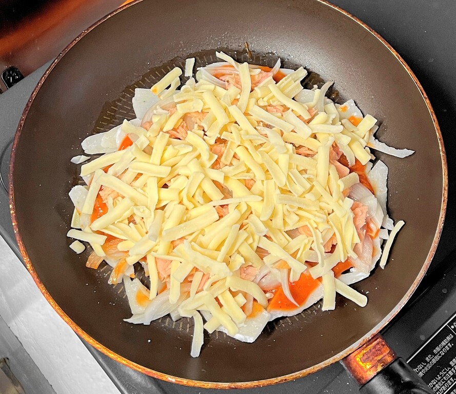 そしてピザ用チーズを掛けたら準備完了で~す。