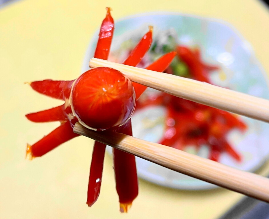 手抜きは一切なし、タコの足は全てちゃんと8本です(笑) よく足が4本とか6本のヤツを見かけますが、あれは正式には「タコさんウインナー擬き」。やっぱり本物は8本じゃなくちゃ! (笑)