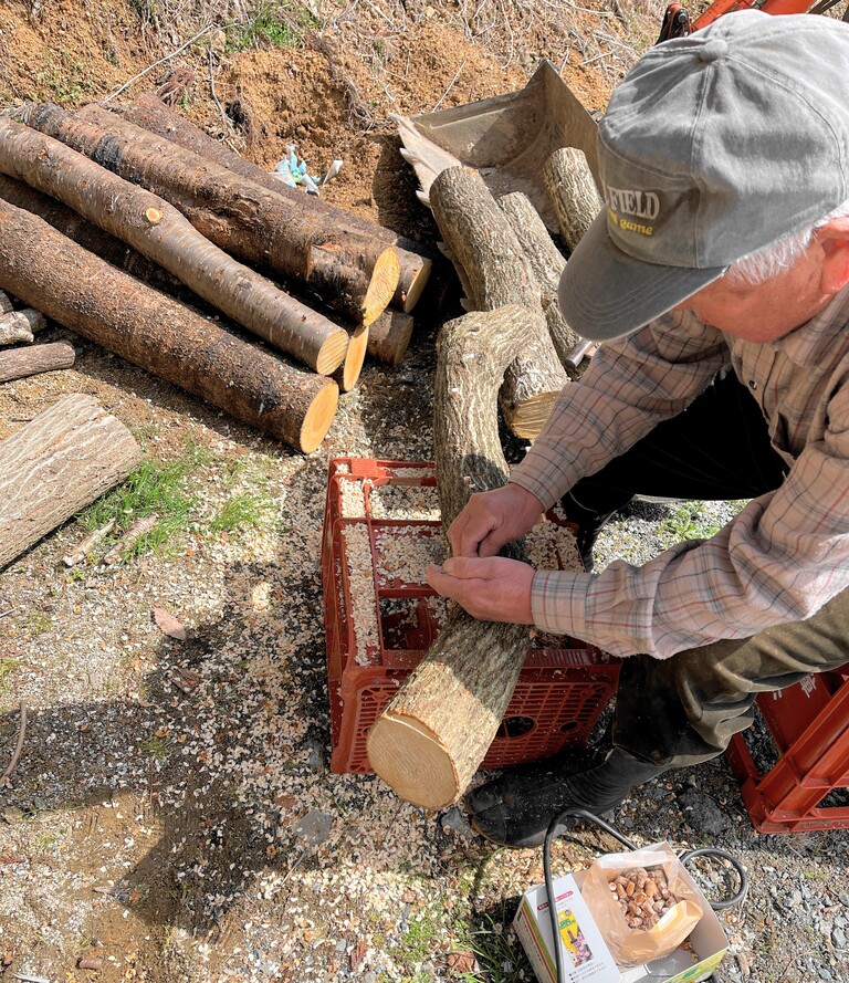 これを、先日きつねくぼ2号と4号で集材してきた原木に植え付けます。