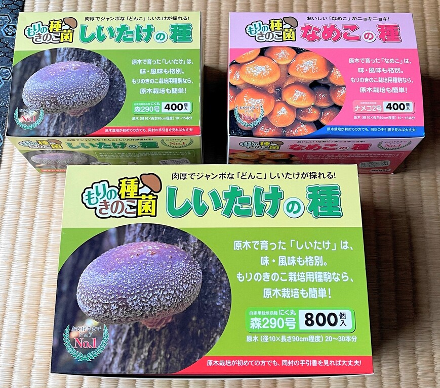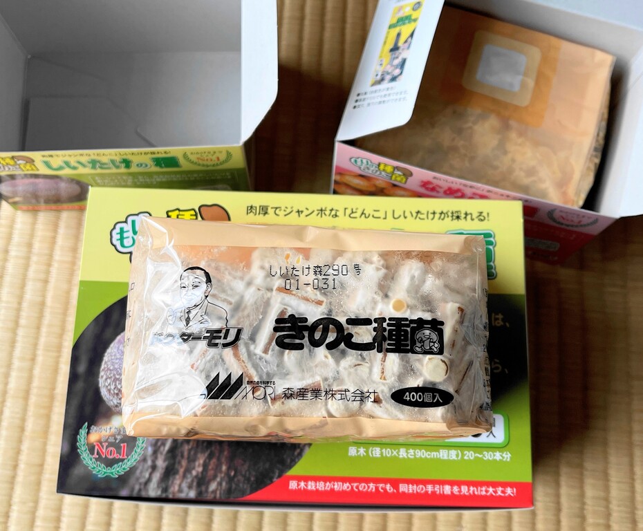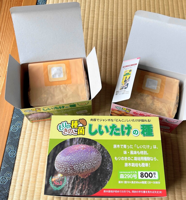 シイタケは1,200個、ナメコは400個の種駒を注文しました。どうやらシイタケのほうは、「森290号」という品種なので「290→にく丸」と呼ばれている模様です(笑) その名のとおり、肉厚の大きなシイタケが出来るそうです。