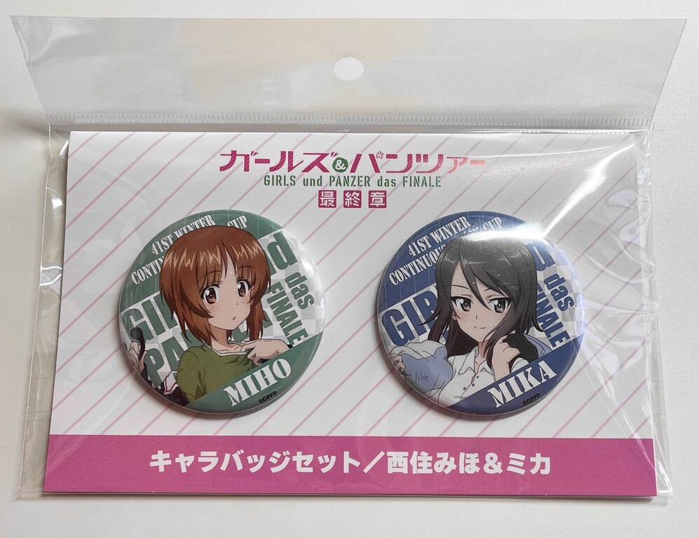 「西住みほ」&「ミカ」のキャラバッチ。