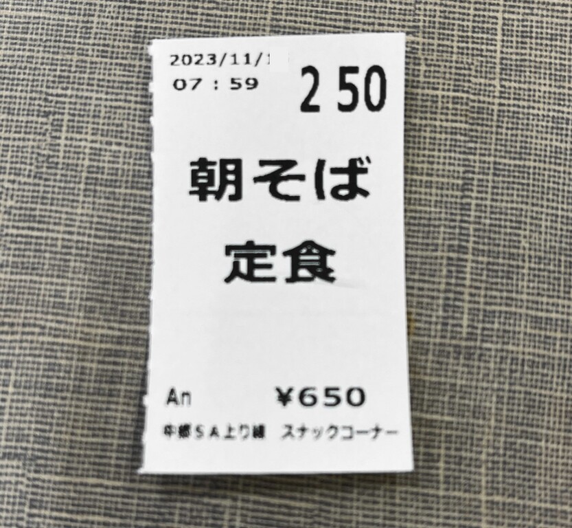 常磐自動車道の中郷SAで朝食タイムです。