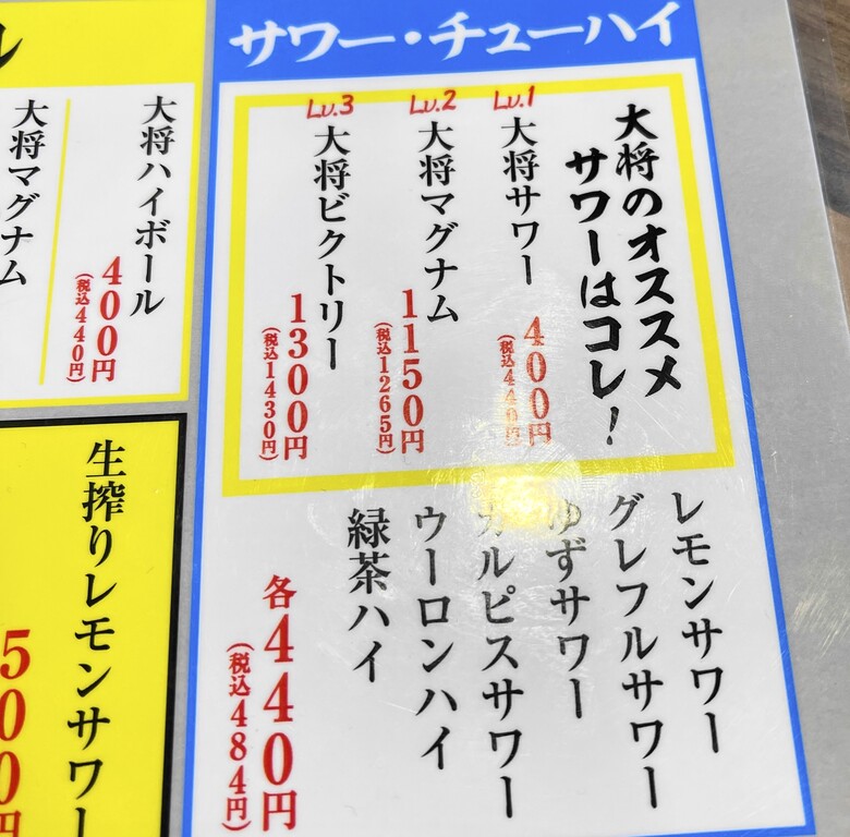 「大将サワー」。でもよかったぁ~、普通サイズで。「大将マグナム」とか「大将ビクトリー」を注文されたらどうしようかと思ってました(笑)