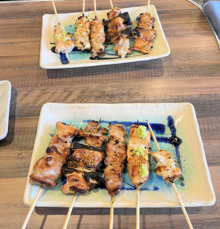 そしてお待たせいたしました。こちらが無料の「焼き鳥5本盛」2人分です。