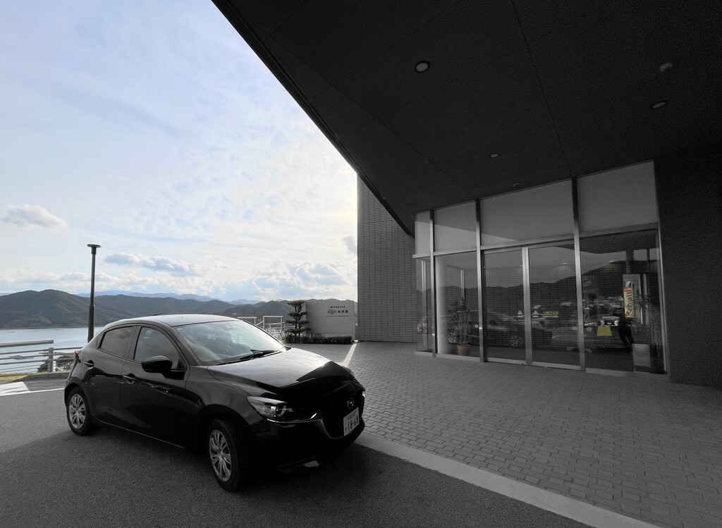 荷物が多いので、お宿の玄関前にレンタカーを着けさせてもらいました。