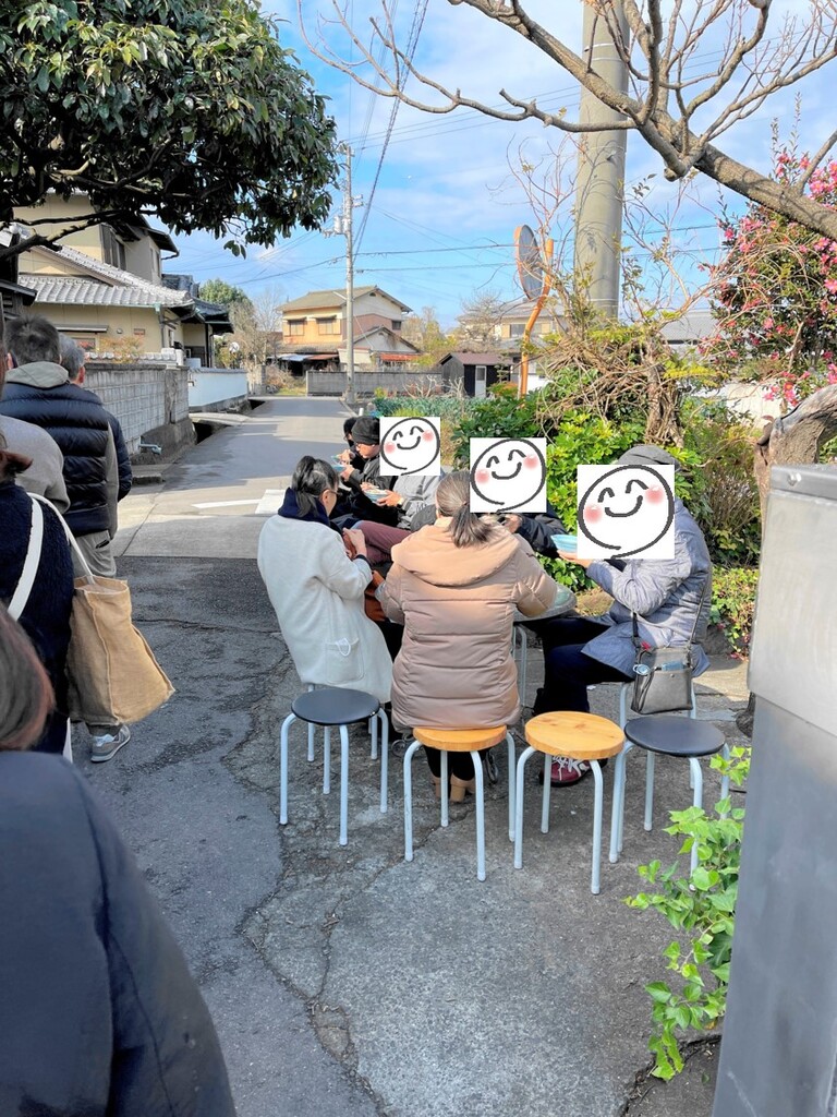 このお店も店内のテーブル席が少ないので、外で食べるのがあたりまえスタイルとなっております。
