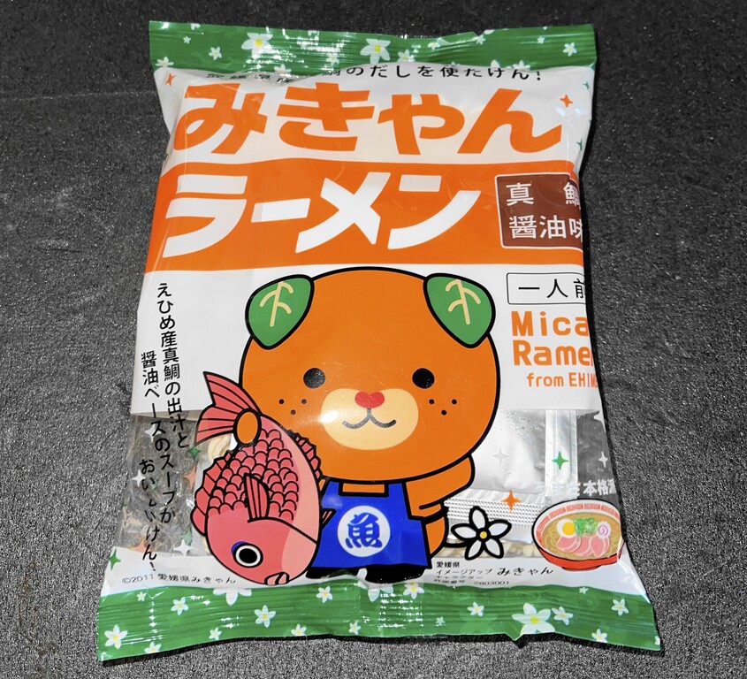 四国は愛媛県のご当地インスタント袋麵の「みきゃんラーメン」です。こちらも先月の旅行の際、高速道路のSAで購入してきたものです。
