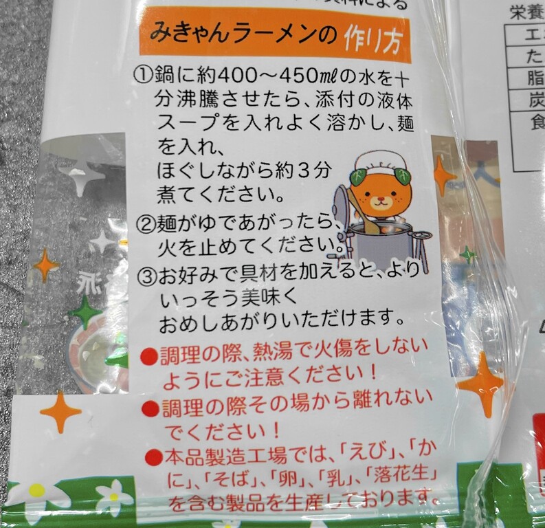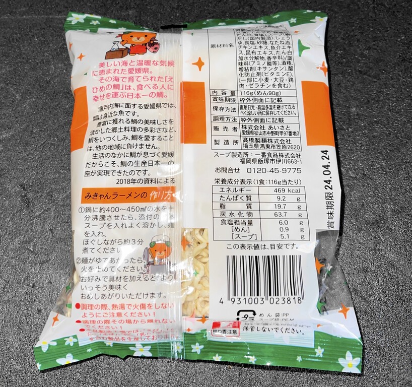 そしてなんと、この「鯛塩ラーメン」と今回の「みきゃんラーメン」は販売者、製造所、スープ製造所、全て同じでした(笑)